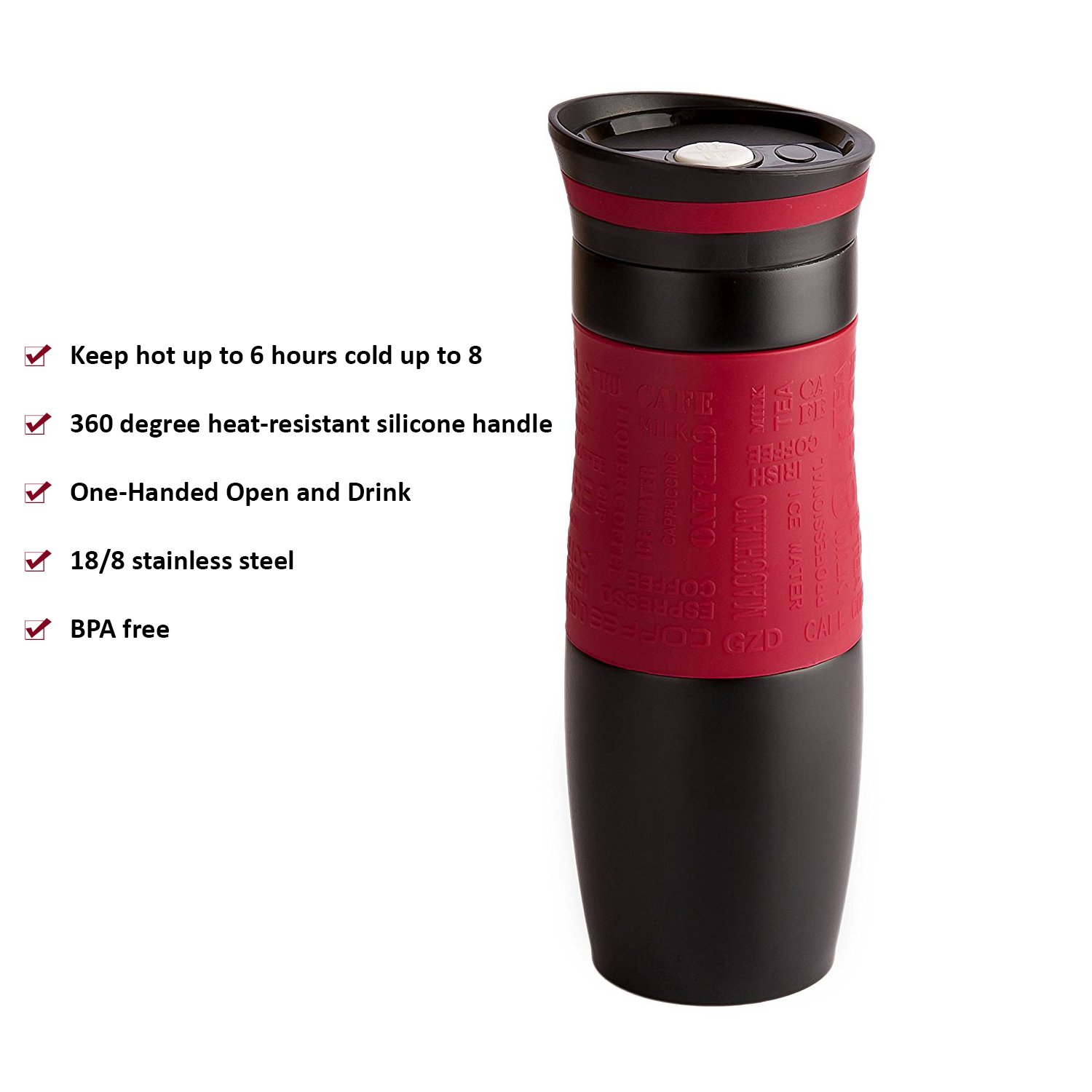 - The travel car mug keeps your favorite beverages piping hot for 6 hours or frosty cold for 8 hours. No more lukewarm coffee during your commute to work. Your caramel latte, macchiato, hot tea or any other beverage will remain fresh and delicious all the way to the last drop.